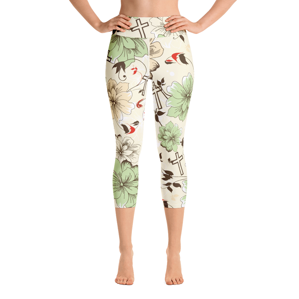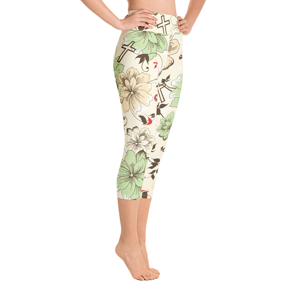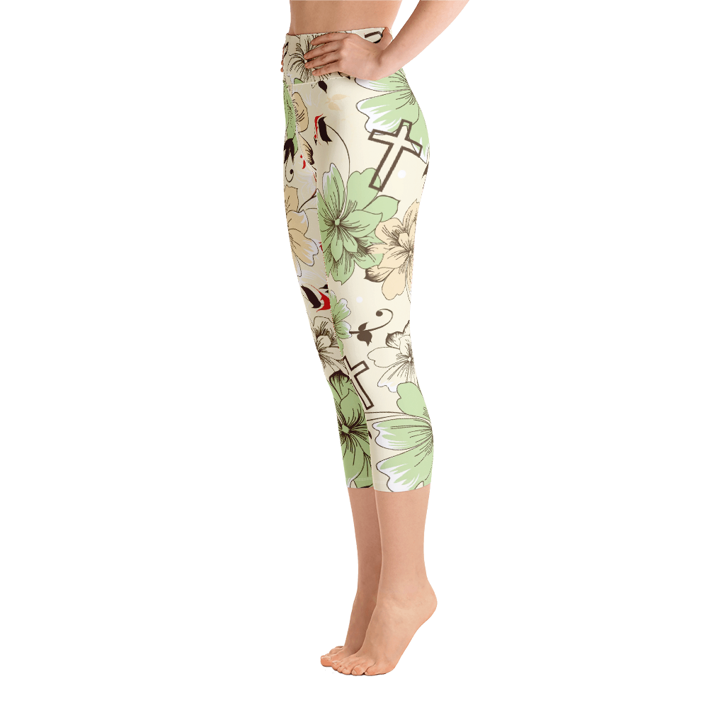 These Floral Cross Capri Leggings with a high, elastic waistband are the perfect choice for the gym or simply a comfortable evening at home.